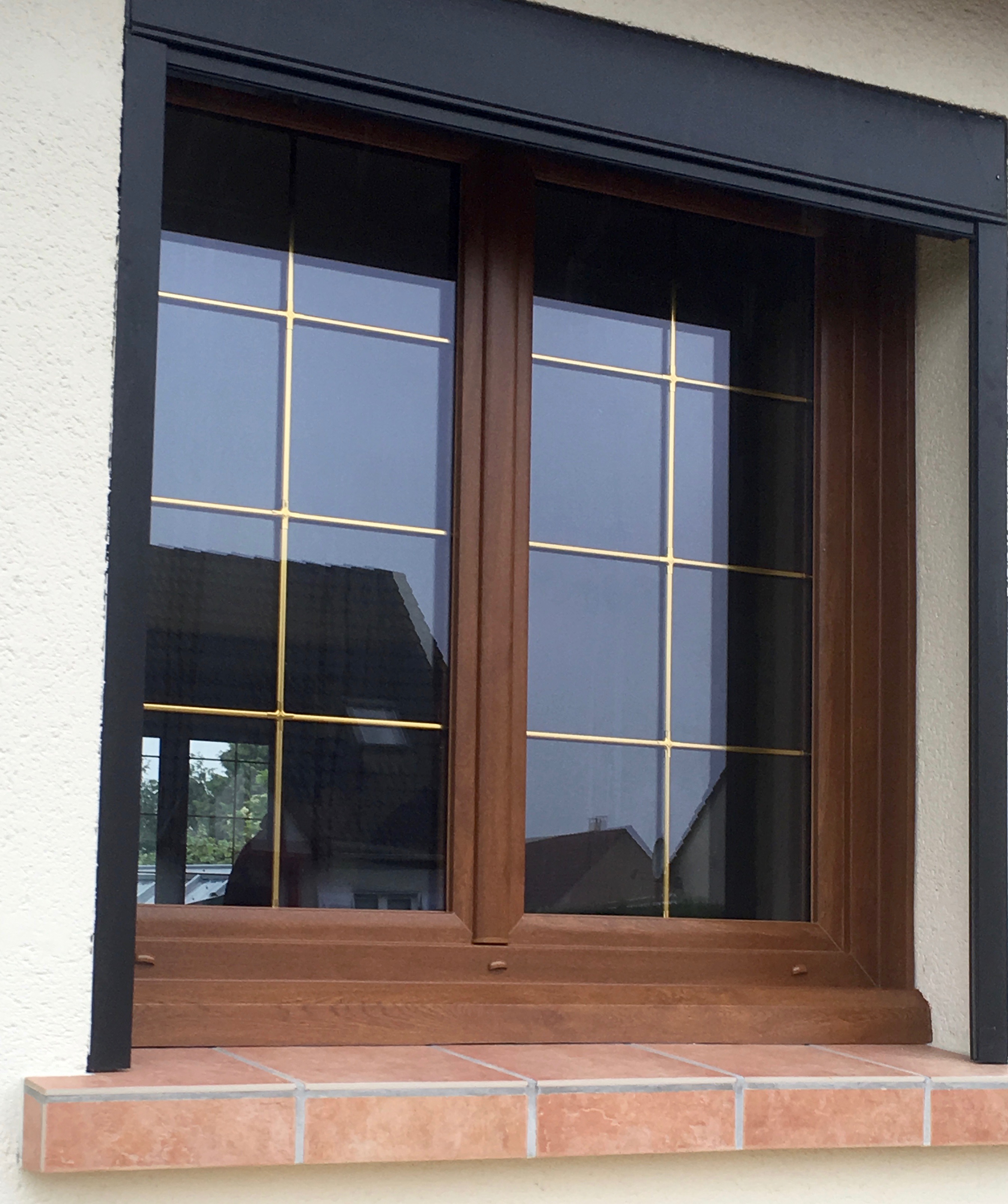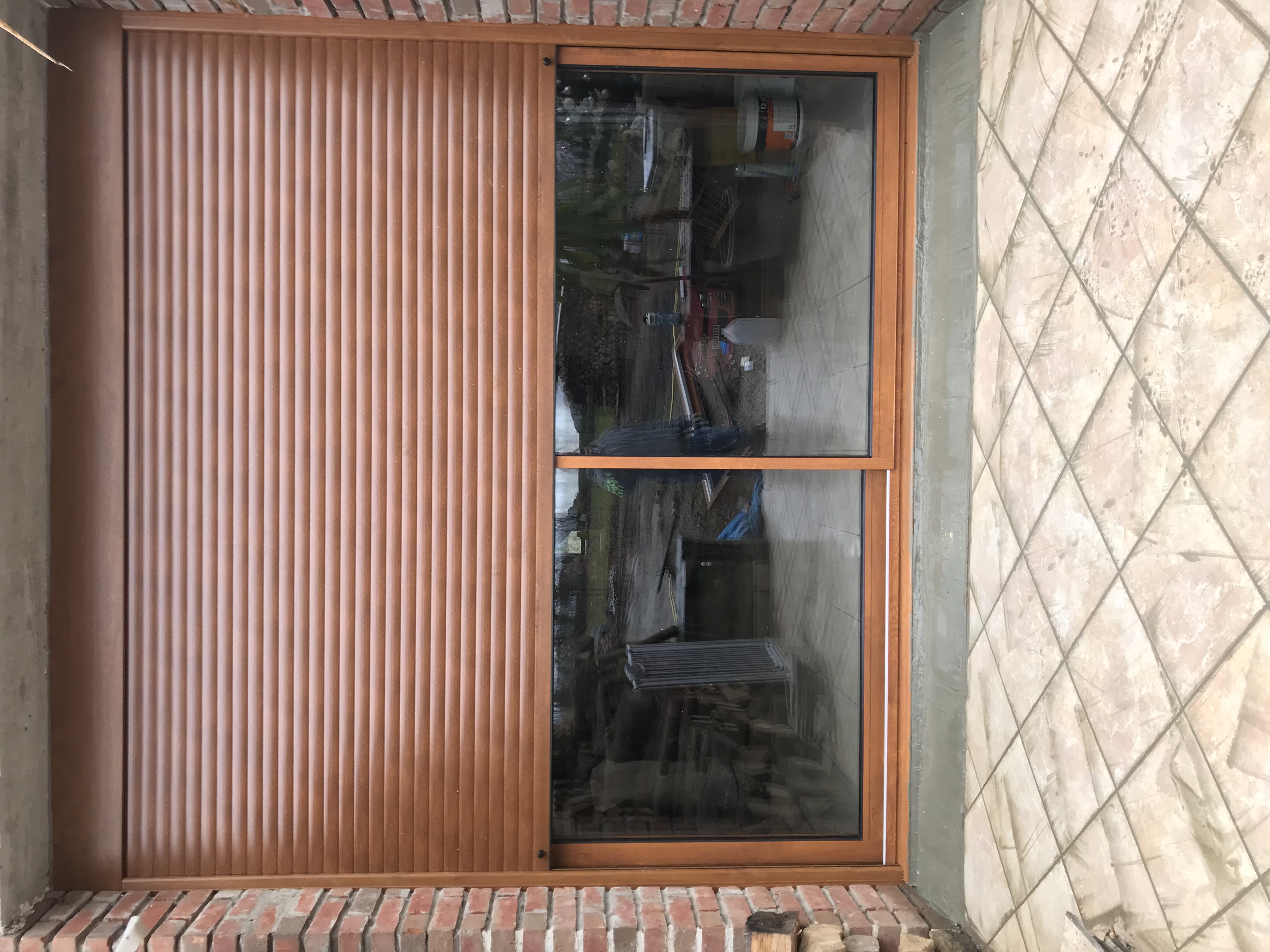 BAIE VITRÉE ET VOLET MOTORISÉ CHÊNE DORÉ
